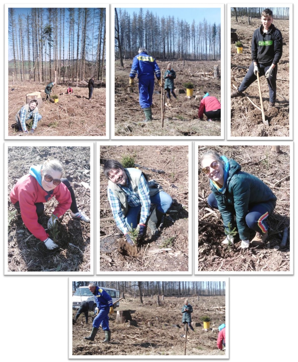 Letos nám to aprílové počasí opravdu ukázalo svůj smysl pro humor. Nebyli jsme schopni najít dřívější termín víkendu, abychom mohli konečně podpořit dobrou věc a to sázení stromků v obecním lese. Až víkend po Velikonocích byl, co se týče počasí docela fajn. Neváhali jsme a šli jsme na to. Během víkendu se zasadilo přes 1000 jehličnatých stromků. Poté co jsme v lese svoji misi ukončili, přemístili jsme se na hřiště, kde jsme dosázeli chybějící stromky. Zasadilo se cca 100 smrčků.